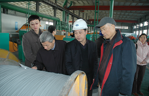 2011年公司第四代技術(shù)員黃小毛陪同黃崇褀院士參觀車間